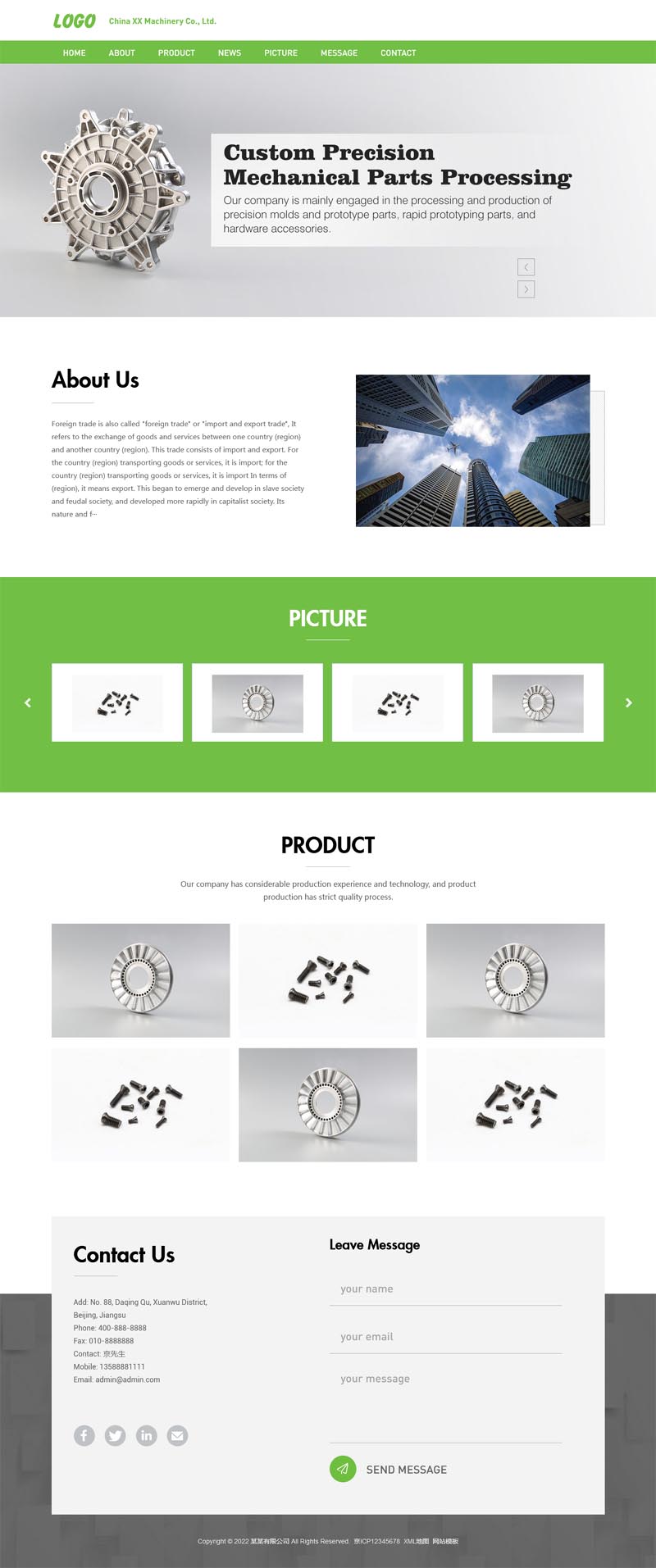 风格酷模板网 » k_pbcms195(自适应手机端)绿色五金零件英文外贸网站pbootcms模板 精密模具零件加工类网站源码