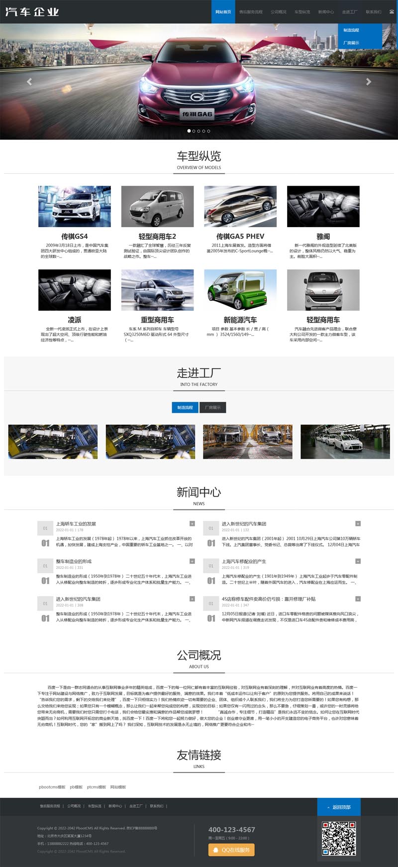 PbootCMS内核开发的网站模板,该模板适用于响应式自适应、汽车销售、汽车展示、二手车销售网站类企业,当然其他行业也可以做,只需要把文字图片换成其他行业的即可;