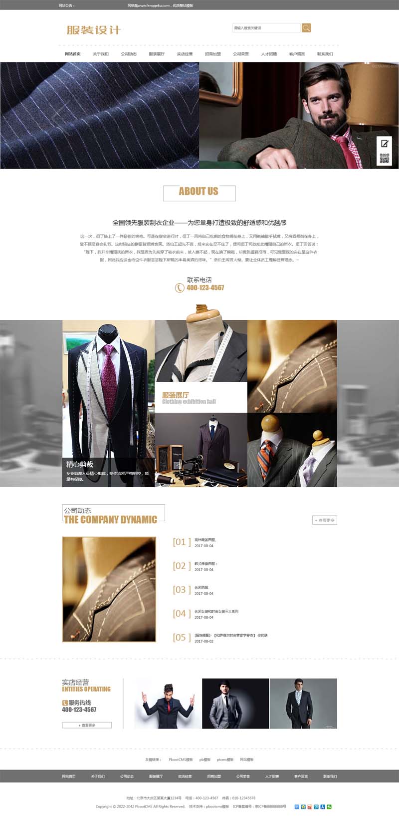 PbootCMS内核开发的网站模板,该模板适用于服装、服装设计、设计定制网站类企业,当然其他行业也可以做,只需要把文字图片换成其他行业的即可;