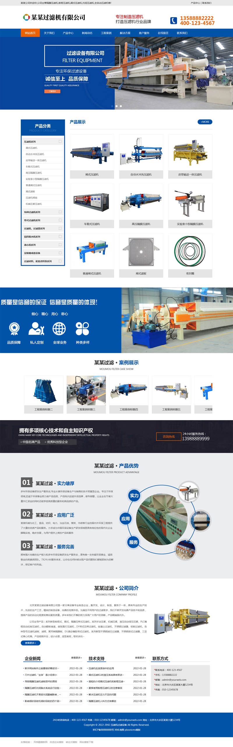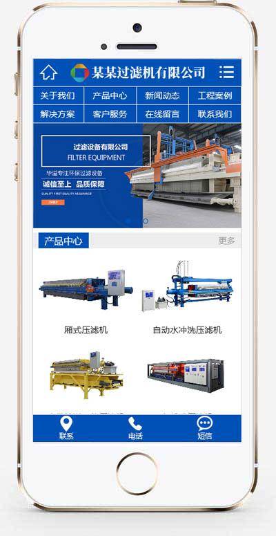 k_pbcms253(带手机)营销型压滤机过滤设备类网站pbootcms模板 蓝色机械设备网站源码下载