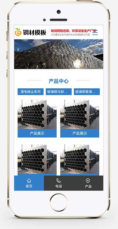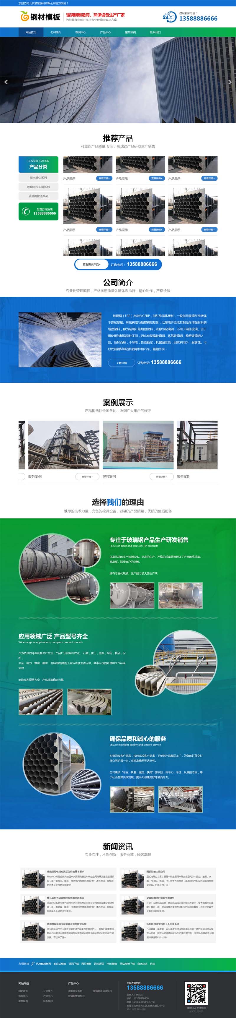 k_pbcms255(带手机)玻璃钢环保设备类网站pbootcms模板 不锈钢钢材网站源码下载
