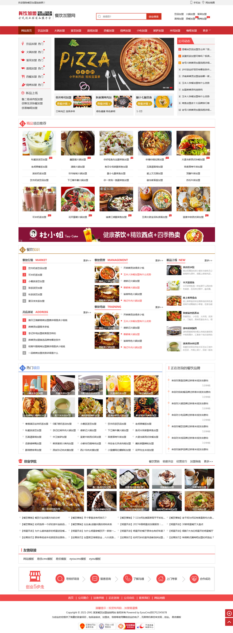 f_eyoucms632(带手机移动端)红色餐饮加盟餐饮招商餐饮培训加盟平台类网站易优模板