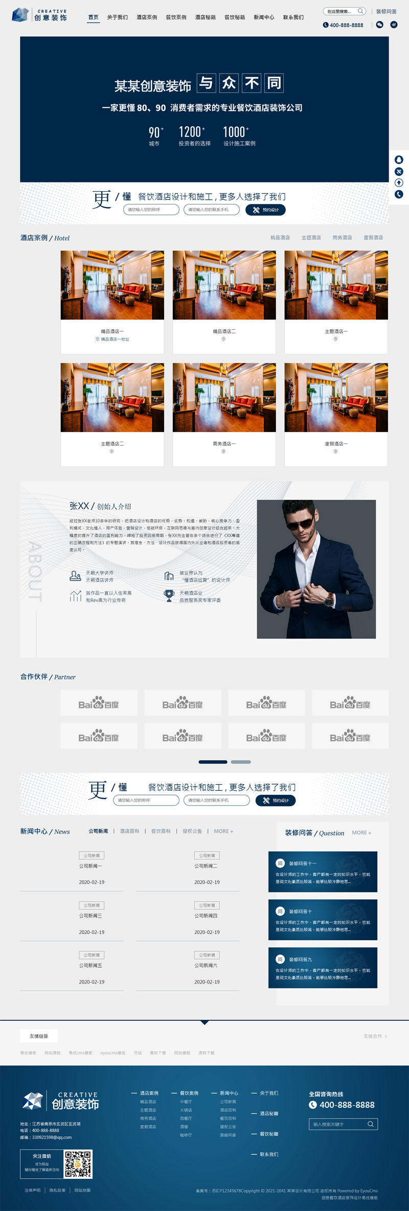 f_eyoucms634(自适应手机移动端)响应式html5蓝色创意餐饮酒店装饰设计类易优模板