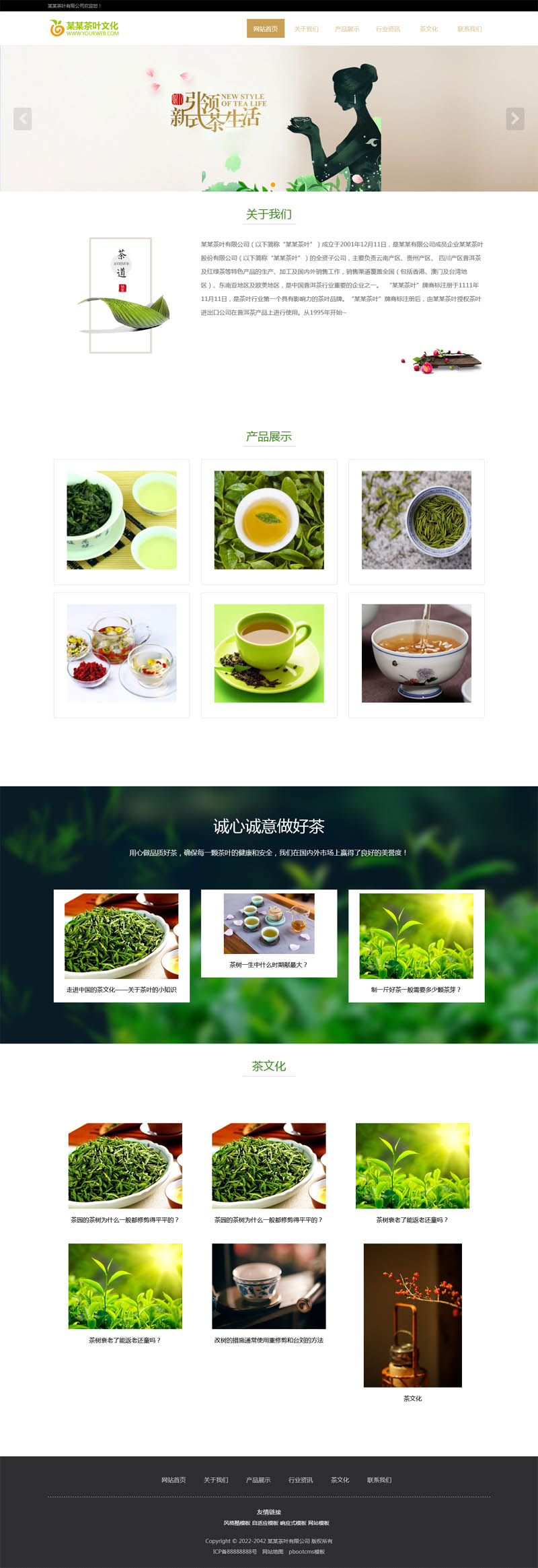 PbootCMS内核开发的网站模板,该模板适用于企业通用类、茶叶种植、茶叶、茶艺、茶文化、茶道网站等企业使用,当然其他行业也可以做,只需要把文字图片换成其他行业的即可;