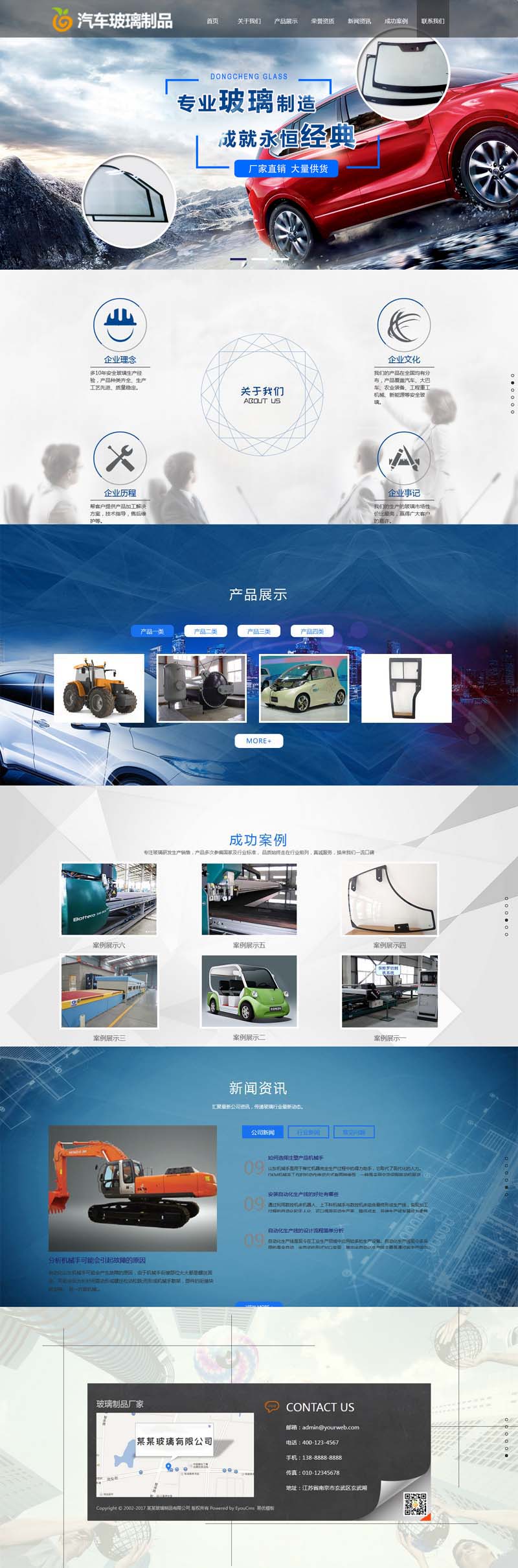 适用站点:玻璃制品网站模板、汽车玻璃网站源码