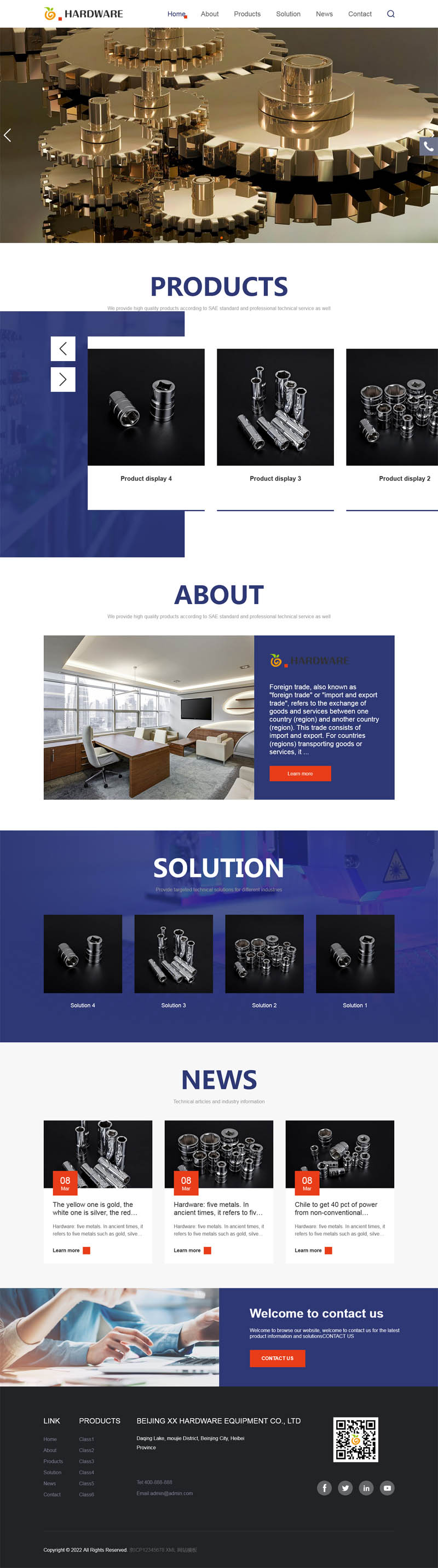 适用站点:外贸网站模板、五金机械外贸网站源码
