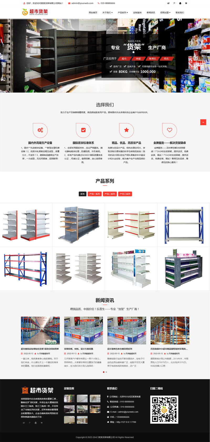 适用站点:仓库货架网站模板、精品展架网站源码