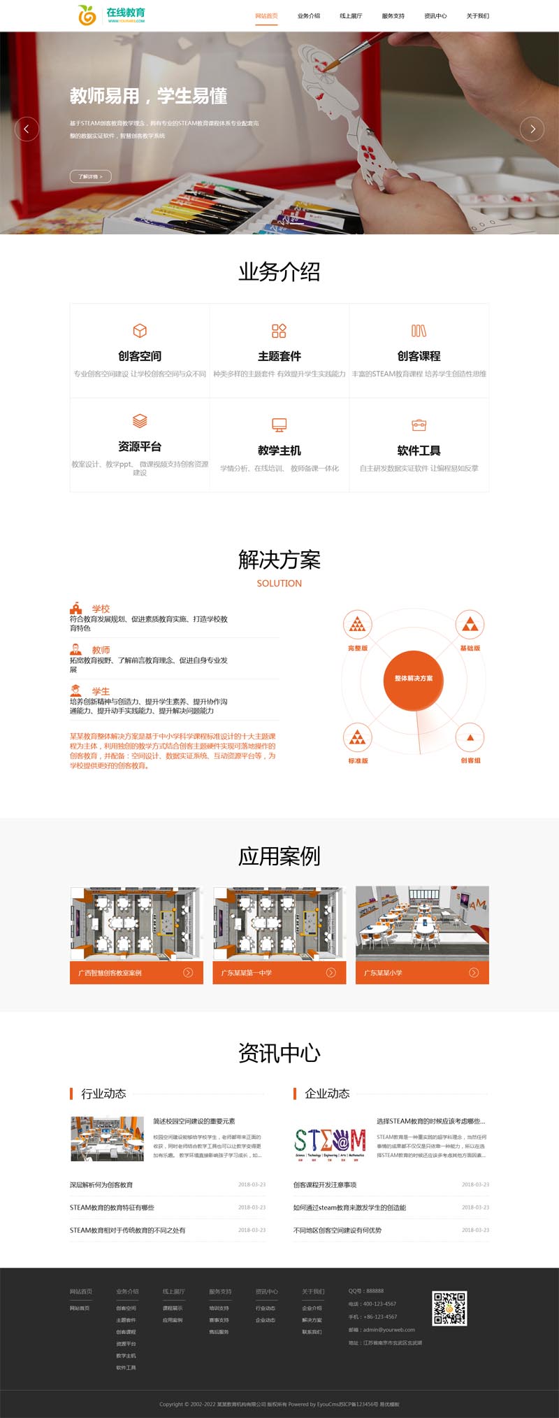 Eyoucms响应式远程线上教育机构智慧教育培训机构培训学校创客空间在线教育创客教育在线教学软件类易优模板_易优cms智慧教育网站模板自适应手机移动端