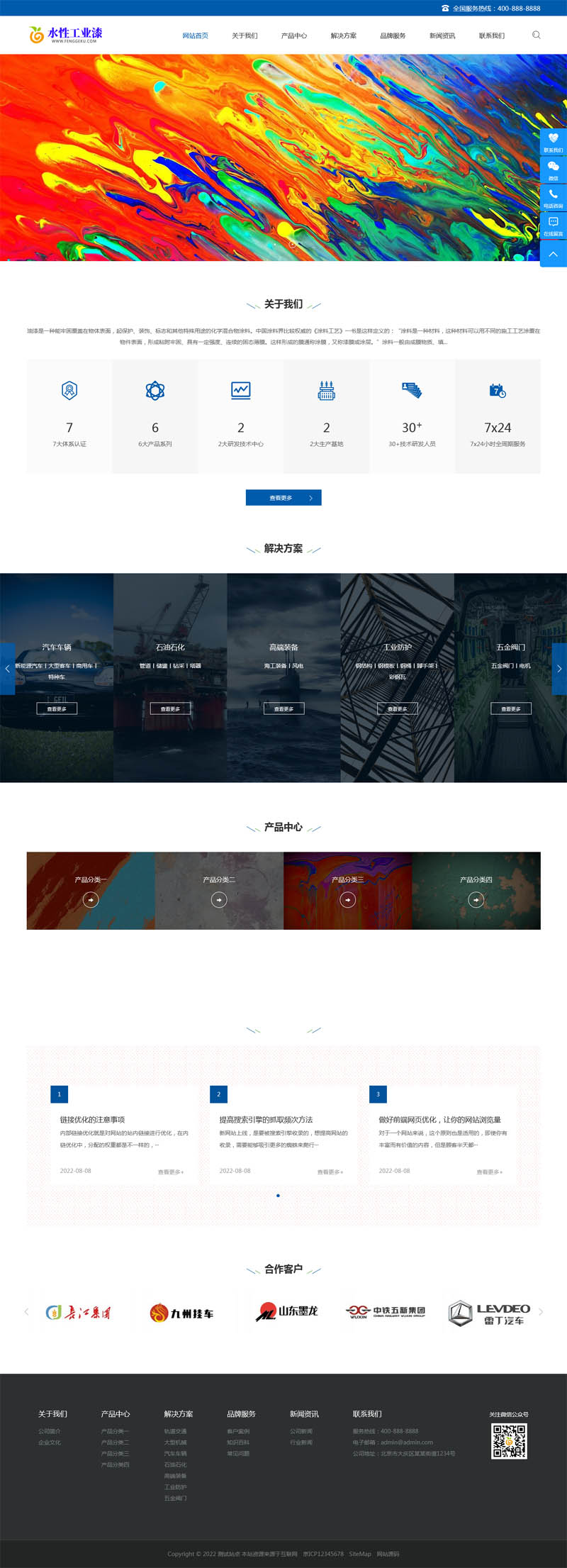 PbootCMS内核开发的网站模板,该模板适用于化工,油漆,工业油漆,水性工业漆类网站使用,当然其他行业也可以做,只需要把文字图片换成其他行业的即可;