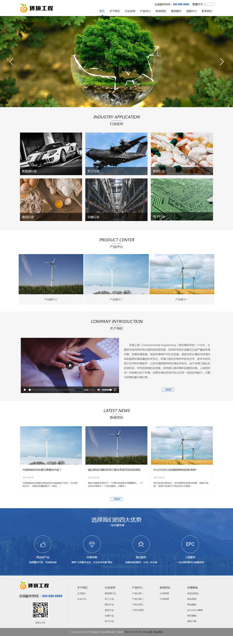 PbootCMS内核开发的网站模板,该模板适用于环保设备,环境工程,环境设备,环保科技,空气治理类网站使用,当然其他行业也可以做,只需要把文字图片换成其他行业的即可;