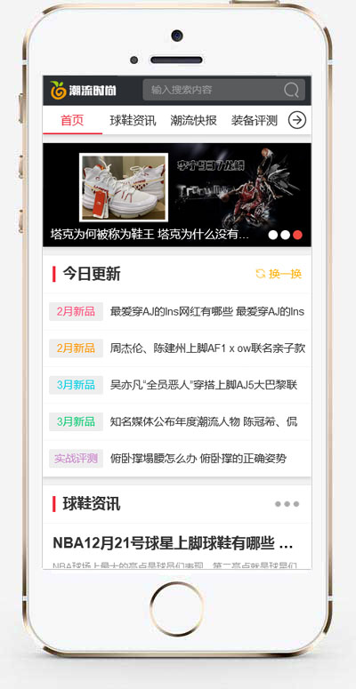 PbootCMS内核开发的网站模板,该模板适用于新闻资讯,时尚球鞋,球鞋资讯,类网站使用,当然其他行业也可以做,只需要把文字图片换成其他行业的即可;