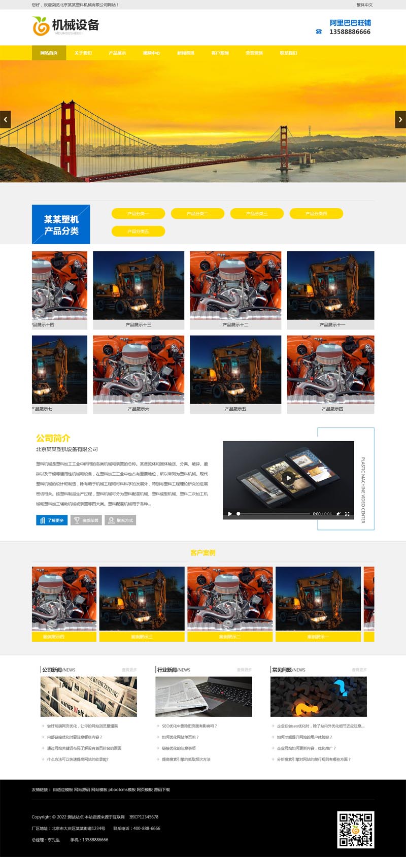 风格酷模板网 » k_pbcms817(带手机)黄色简繁双语塑料注塑机械设备企业pbootcms网站模板 机械生产厂家网站源码下载