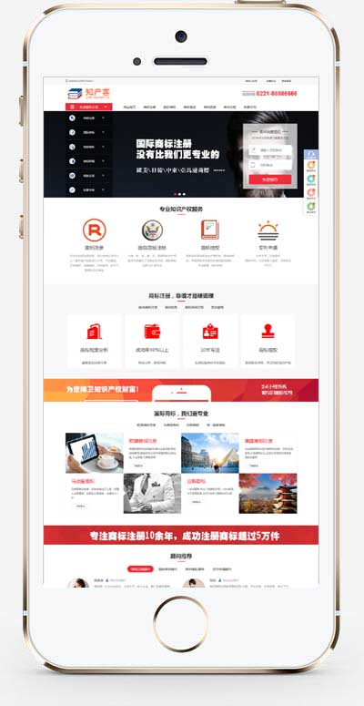 k_pbcms027商标注册公司类网站pbootcms模板 红色知识产权代理机构网站源码