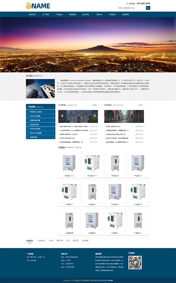 PbootCMS内核开发的网站模板,该模板适用于恒温培养箱,恒湿箱,企业站,设备类网站使用,当然其他行业也可以做,只需要把文字图片换成其他行业的即可;