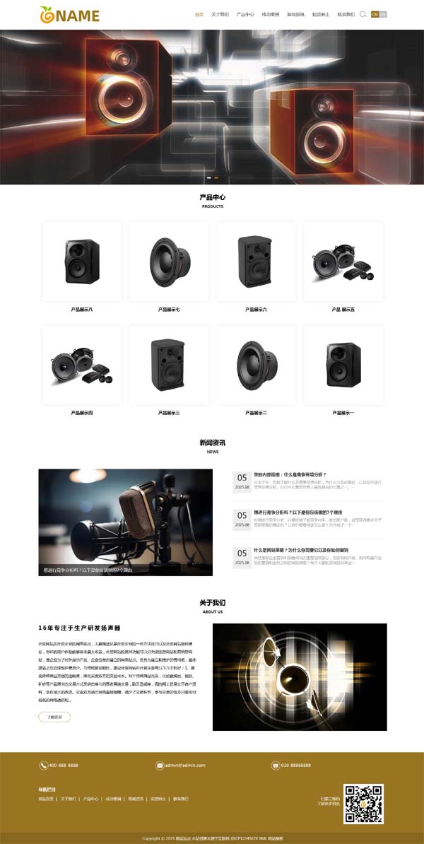 PbootCMS内核开发的网站模板,该模板适用于中英文双语网站,外贸网站,扬声器类网站使用,当然其他行业也可以做,只需要把文字图片换成其他行业的即可;
