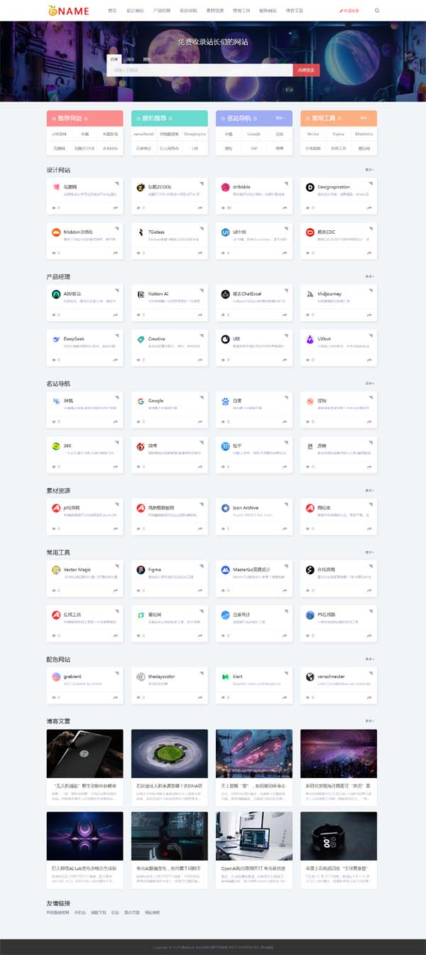PbootCMS内核开发的网站模板,该模板适用于导航网站,网站目录类网站使用,当然其他行业也可以做,只需要把文字图片换成其他行业的即可;