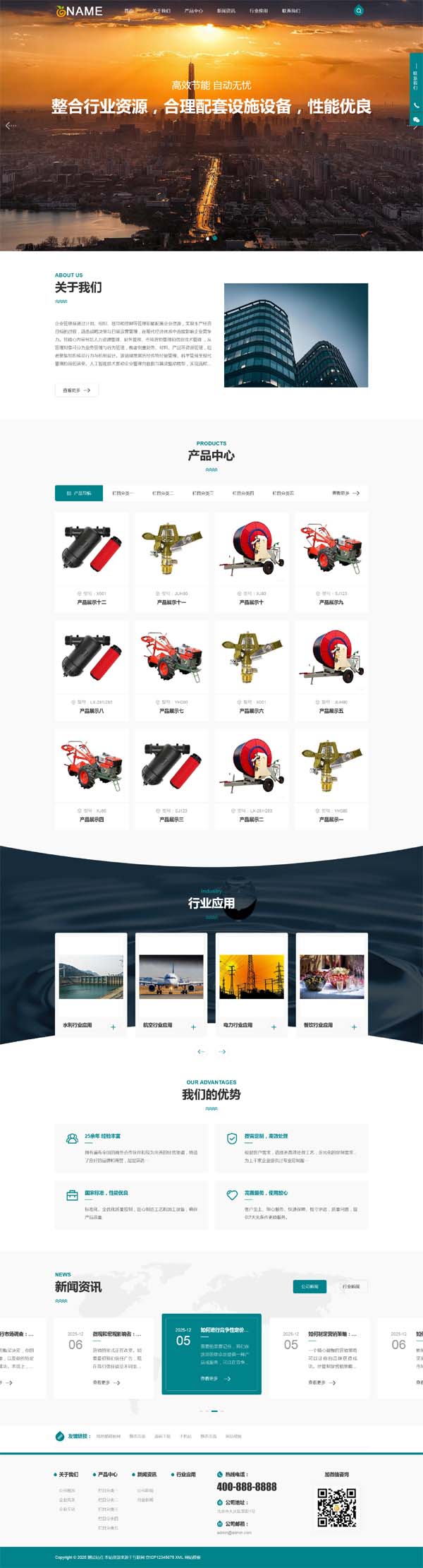 PbootCMS内核开发的网站模板,该模板适用于农业,农业设备,灌溉设备,企业,农机设备类网站使用,当然其他行业也可以做,只需要把文字图片换成其他行业的即可;