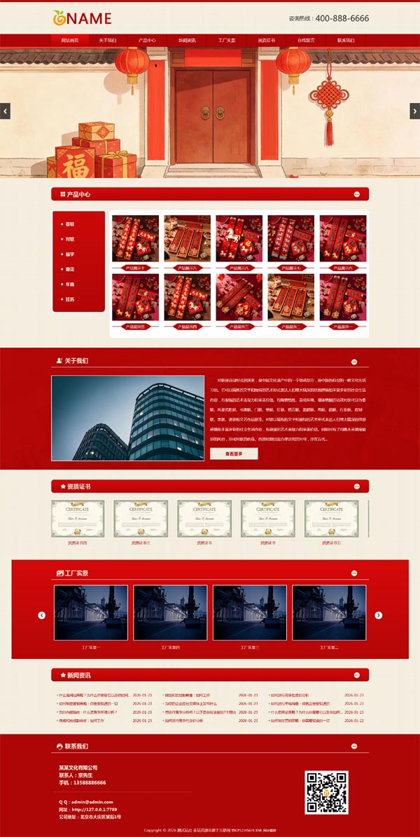 PbootCMS内核开发的网站模板,该模板适用于福字,春联,对联,乔迁对联,印刷制品类网站使用,当然其他行业也可以做,只需要把文字图片换成其他行业的即可;