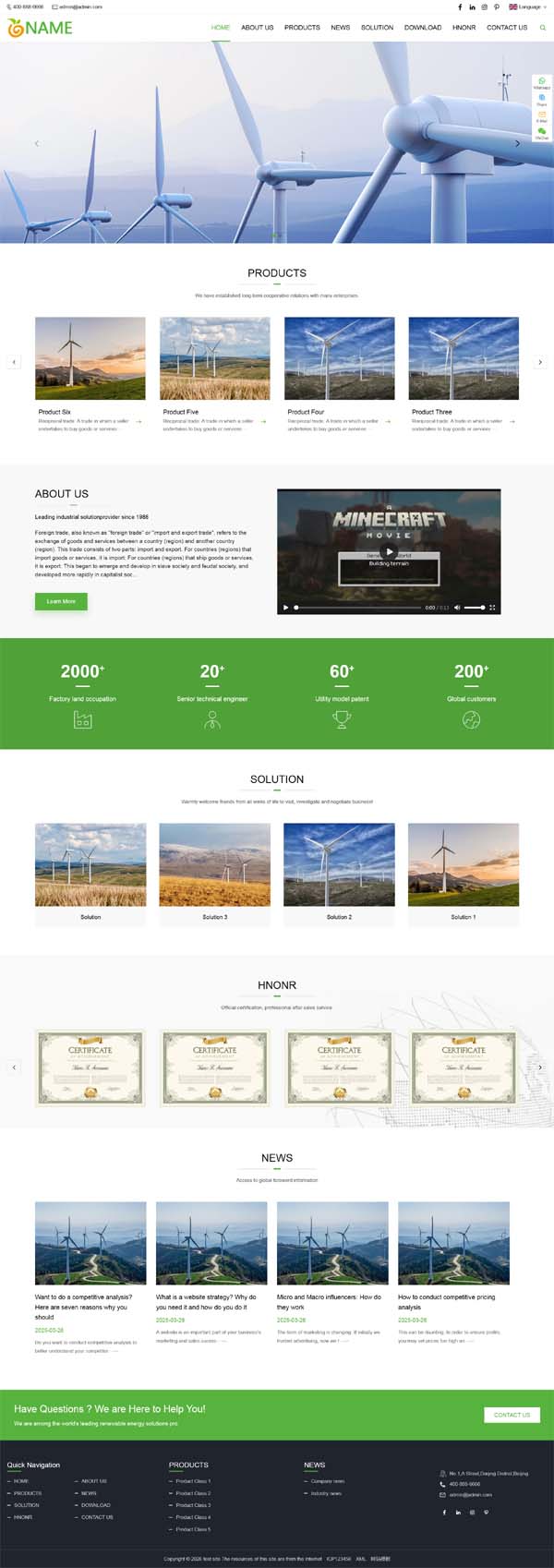 PbootCMS内核开发的网站模板,该模板适用于外贸,中英文,三级目录,通用,企业类网站使用,当然其他行业也可以做,只需要把文字图片换成其他行业的即可;